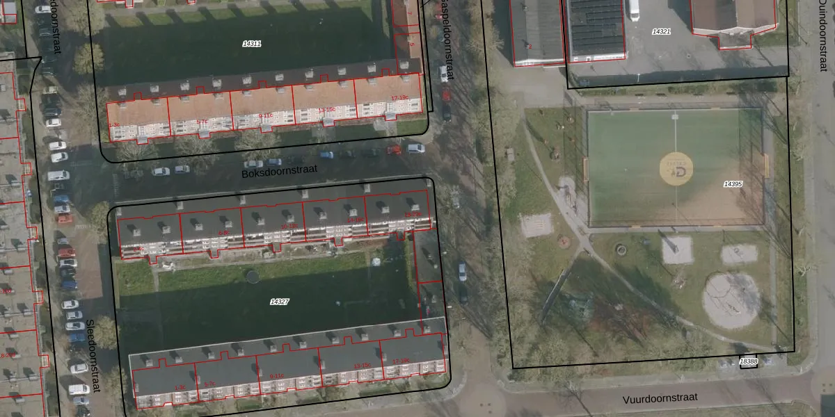 Het perceel waarop Boksdoornstraat 20-b staat heeft een oppervlakte van 4075 m². Dit is een zeer groot perceel. De perceeloppervlakte wordt geregistreerd door het Kadaster. Gedetailleerde informatie over de maten van dit perceel kunt u vinden in het rapport Kadastrale kaart met maatvoering van Boksdoornstraat 20-b.