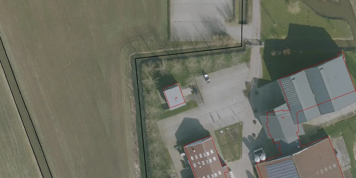 Het perceel waarop Boksumerdyk 13 staat heeft een oppervlakte van 12,0 ha. Dit is een zeer groot perceel. De perceeloppervlakte wordt geregistreerd door het Kadaster. Gedetailleerde informatie over de maten van dit perceel kunt u vinden in het rapport Kadastrale kaart met maatvoering van Boksumerdyk 13.