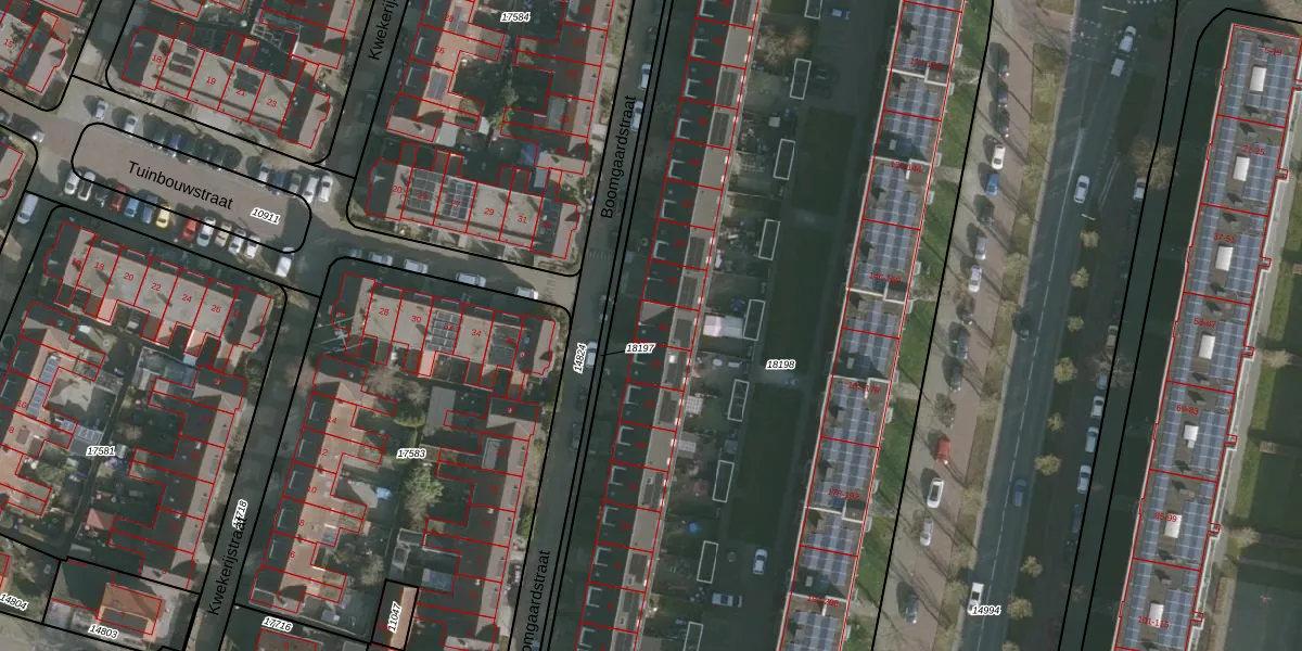 Boomgaardstraat 20 is gelegen op kadastraal perceel LWD00G18198. Deze kadastrale aanduiding is uniek en wordt gebruikt door het Kadaster om eigendomsrechten en andere zakelijke rechten vast te leggen. Het perceel maakt onderdeel uit van de kadastrale gemeente Leeuwarden.