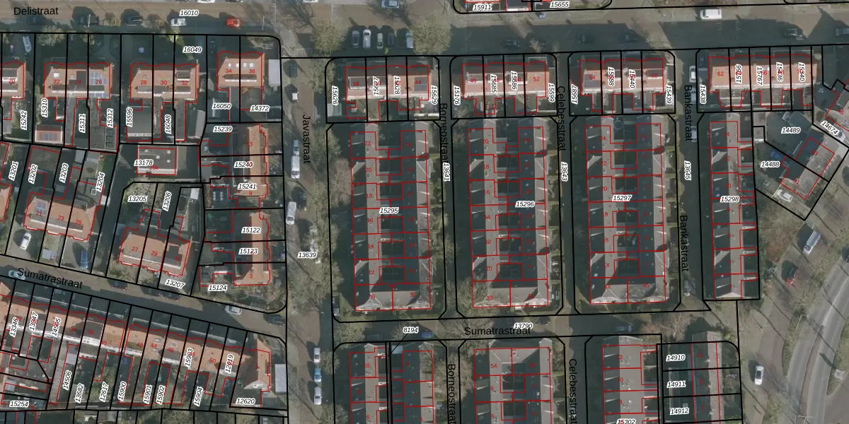 Het perceel waarop Borneostraat 15 staat heeft een oppervlakte van 1264 m². Dit is een zeer groot perceel. De perceeloppervlakte wordt geregistreerd door het Kadaster. Gedetailleerde informatie over de maten van dit perceel kunt u vinden in het rapport Kadastrale kaart met maatvoering van Borneostraat 15.