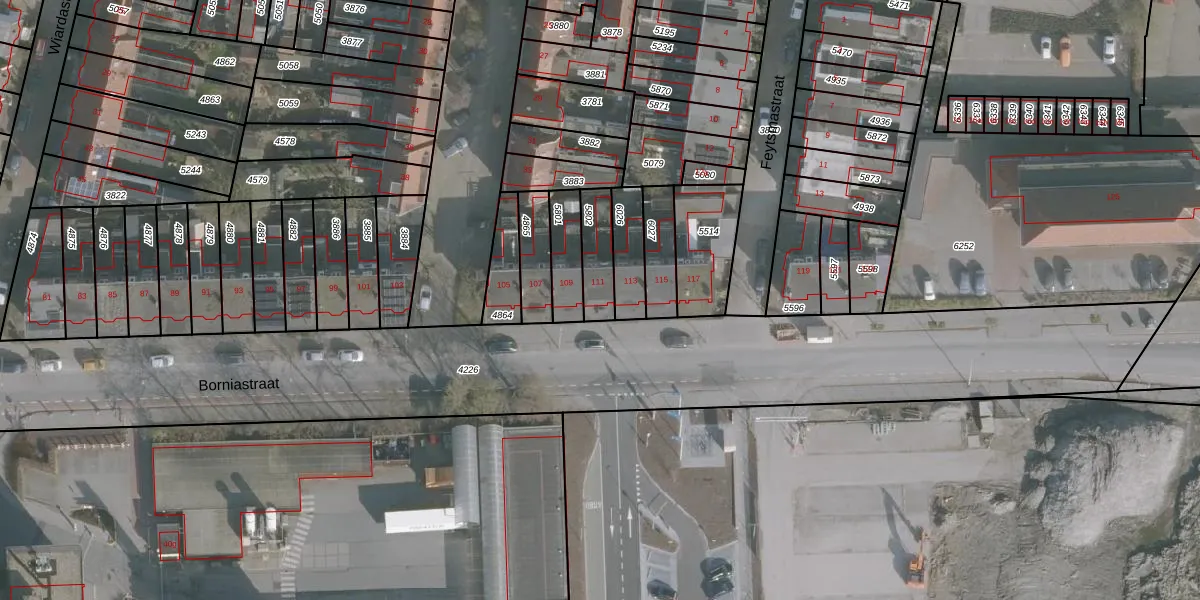 Borniastraat 111 is gelegen op kadastraal perceel HZM00B5802. Deze kadastrale aanduiding is uniek en wordt gebruikt door het Kadaster om eigendomsrechten en andere zakelijke rechten vast te leggen. Het perceel maakt onderdeel uit van de kadastrale gemeente Huizum.