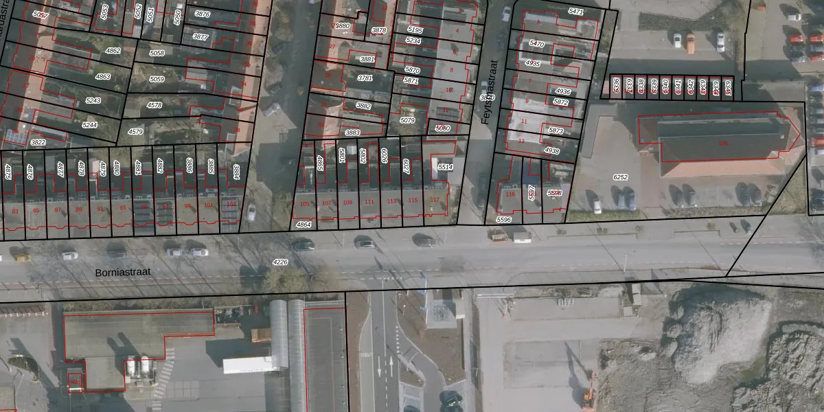 Borniastraat 115 is gelegen op kadastraal perceel HZM00B6027. Deze kadastrale aanduiding is uniek en wordt gebruikt door het Kadaster om eigendomsrechten en andere zakelijke rechten vast te leggen. Het perceel maakt onderdeel uit van de kadastrale gemeente Huizum.