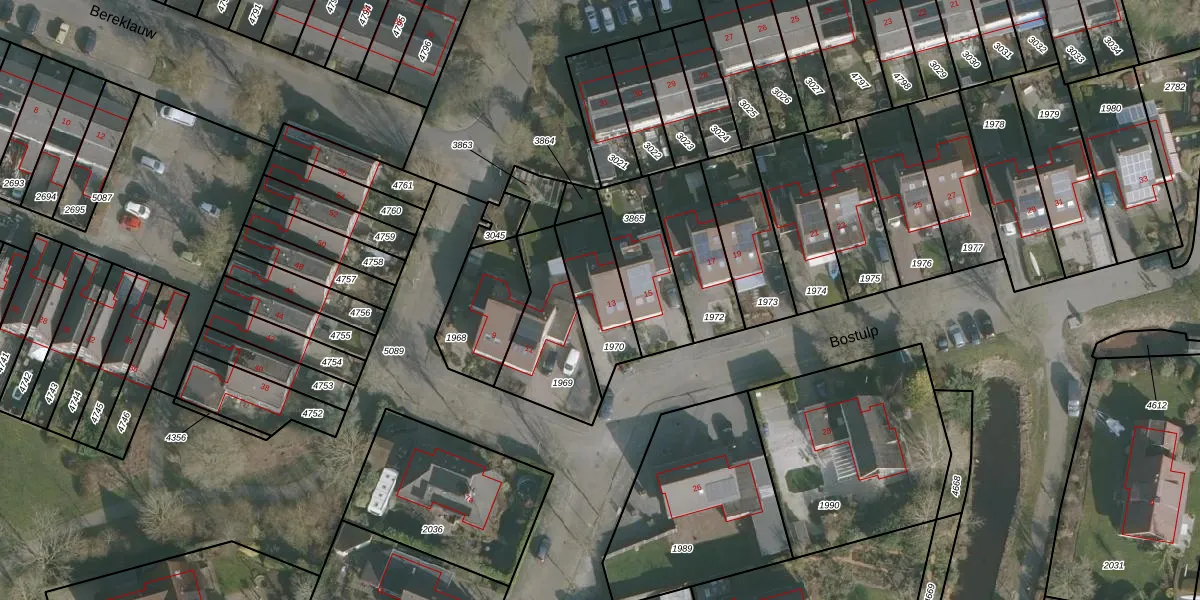 Het perceel waarop Bostulp 13 staat heeft een oppervlakte van 218 m². Dit is een middelgroot perceel. De perceeloppervlakte wordt geregistreerd door het Kadaster. Gedetailleerde informatie over de maten van dit perceel kunt u vinden in het rapport Kadastrale kaart met maatvoering van Bostulp 13.