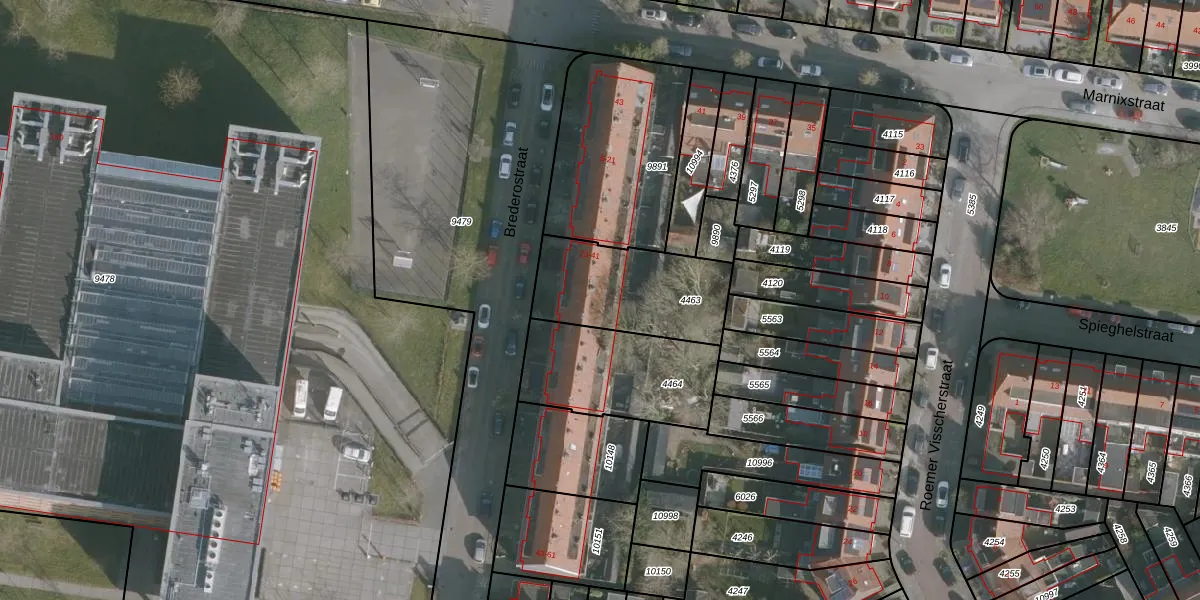 Het perceel waarop Brederostraat 29 staat heeft een oppervlakte van 453 m². Dit is een groot perceel. De perceeloppervlakte wordt geregistreerd door het Kadaster. Gedetailleerde informatie over de maten van dit perceel kunt u vinden in het rapport Kadastrale kaart met maatvoering van Brederostraat 29.