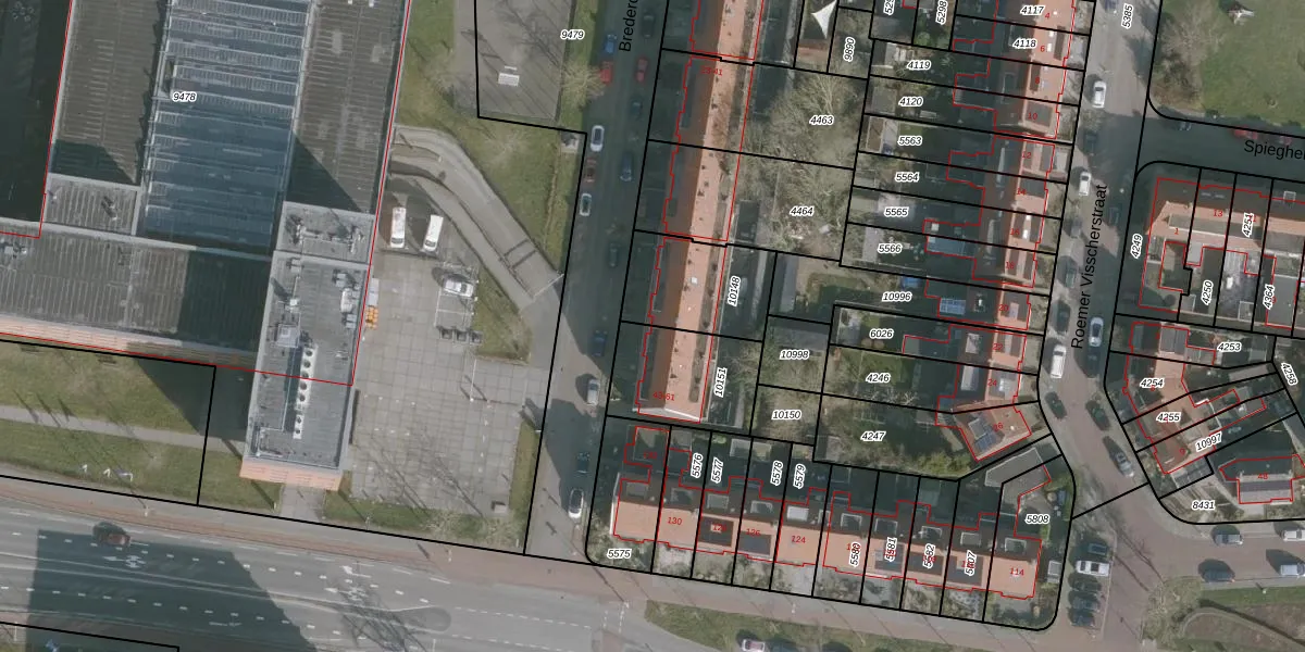 Het perceel waarop Brederostraat 51 staat heeft een oppervlakte van 314 m². Dit is een groot perceel. De perceeloppervlakte wordt geregistreerd door het Kadaster. Gedetailleerde informatie over de maten van dit perceel kunt u vinden in het rapport Kadastrale kaart met maatvoering van Brederostraat 51.