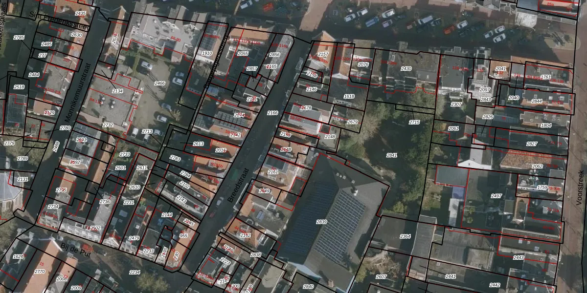 Het perceel waarop Breedstraat 54-tr staat heeft een oppervlakte van 76 m². Dit is een klein perceel. De perceeloppervlakte wordt geregistreerd door het Kadaster. Gedetailleerde informatie over de maten van dit perceel kunt u vinden in het rapport Kadastrale kaart met maatvoering van Breedstraat 54-tr.