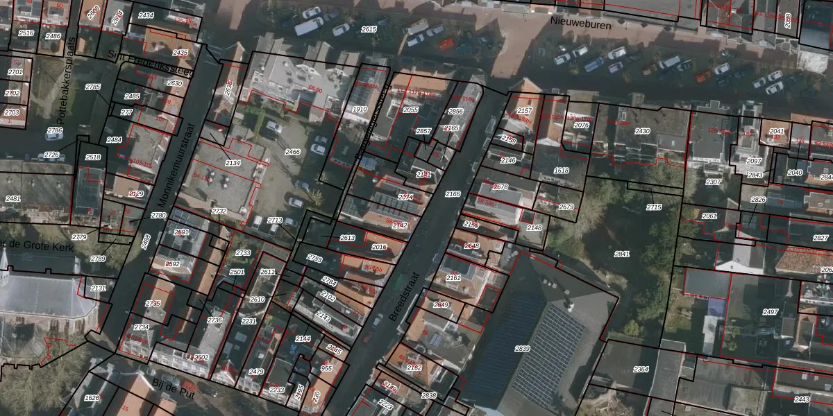 Het perceel waarop Breedstraat 61 staat heeft een oppervlakte van 165 m². Dit is een middelgroot perceel. De perceeloppervlakte wordt geregistreerd door het Kadaster. Gedetailleerde informatie over de maten van dit perceel kunt u vinden in het rapport Kadastrale kaart met maatvoering van Breedstraat 61.