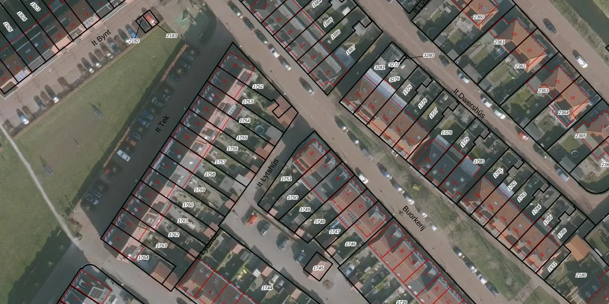 Het perceel waarop Buorkerij 49 staat heeft een oppervlakte van 189 m². Dit is een middelgroot perceel. De perceeloppervlakte wordt geregistreerd door het Kadaster. Gedetailleerde informatie over de maten van dit perceel kunt u vinden in het rapport Kadastrale kaart met maatvoering van Buorkerij 49.