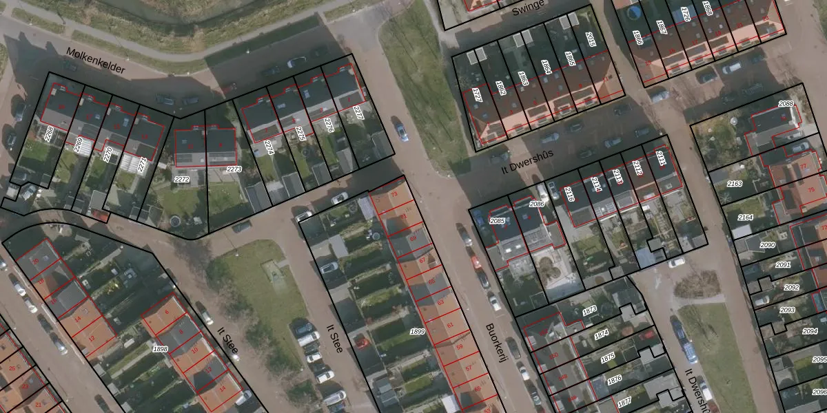 Het perceel waarop Buorkerij 71 staat heeft een oppervlakte van 1777 m². Dit is een zeer groot perceel. De perceeloppervlakte wordt geregistreerd door het Kadaster. Gedetailleerde informatie over de maten van dit perceel kunt u vinden in het rapport Kadastrale kaart met maatvoering van Buorkerij 71.