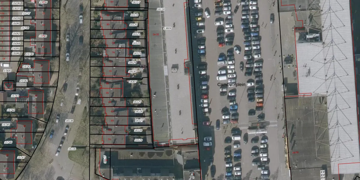 Het perceel waarop Cambuurplein 25 staat heeft een oppervlakte van 2930 m². Dit is een zeer groot perceel. De perceeloppervlakte wordt geregistreerd door het Kadaster. Gedetailleerde informatie over de maten van dit perceel kunt u vinden in het rapport Kadastrale kaart met maatvoering van Cambuurplein 25.