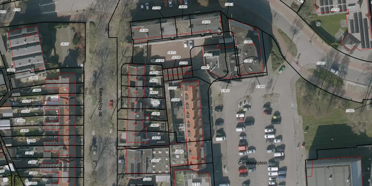 Het perceel waarop Cambuurplein 36 staat heeft een oppervlakte van 760 m². Dit is een groot perceel. De perceeloppervlakte wordt geregistreerd door het Kadaster. Gedetailleerde informatie over de maten van dit perceel kunt u vinden in het rapport Kadastrale kaart met maatvoering van Cambuurplein 36.