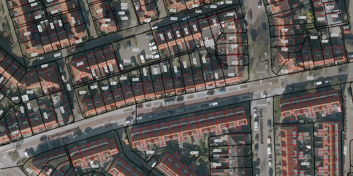 Gebruik de zoekbalk of klik op een perceel voor informatie over de adressen binnen dit perceel.