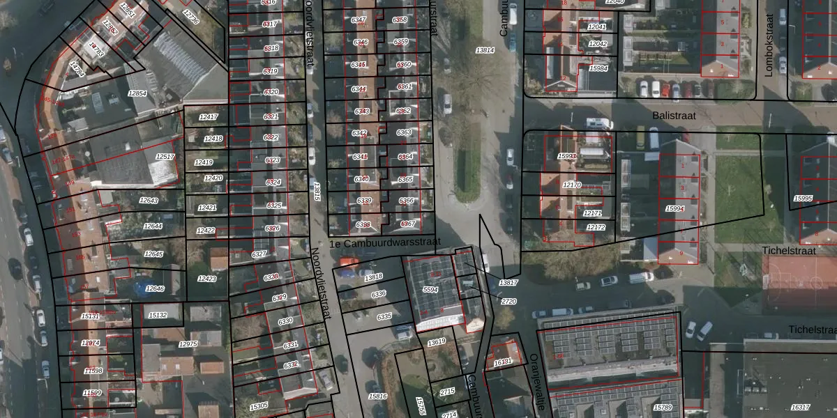 Gebruik de zoekbalk of klik op een perceel voor informatie over de adressen binnen dit perceel.