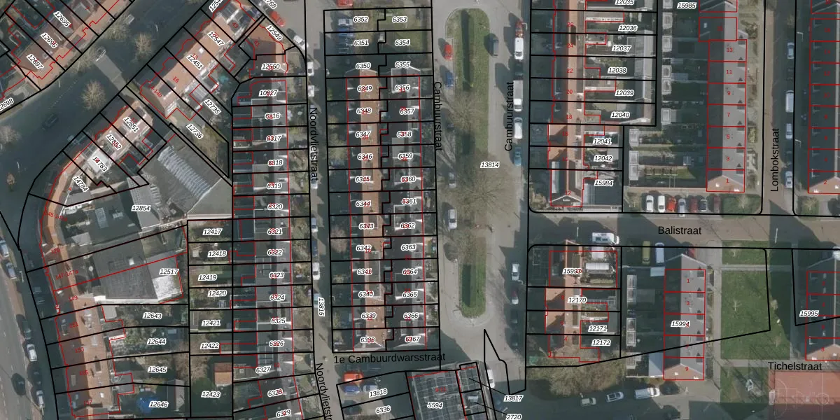 Gebruik de zoekbalk of klik op een perceel voor informatie over de adressen binnen dit perceel.
