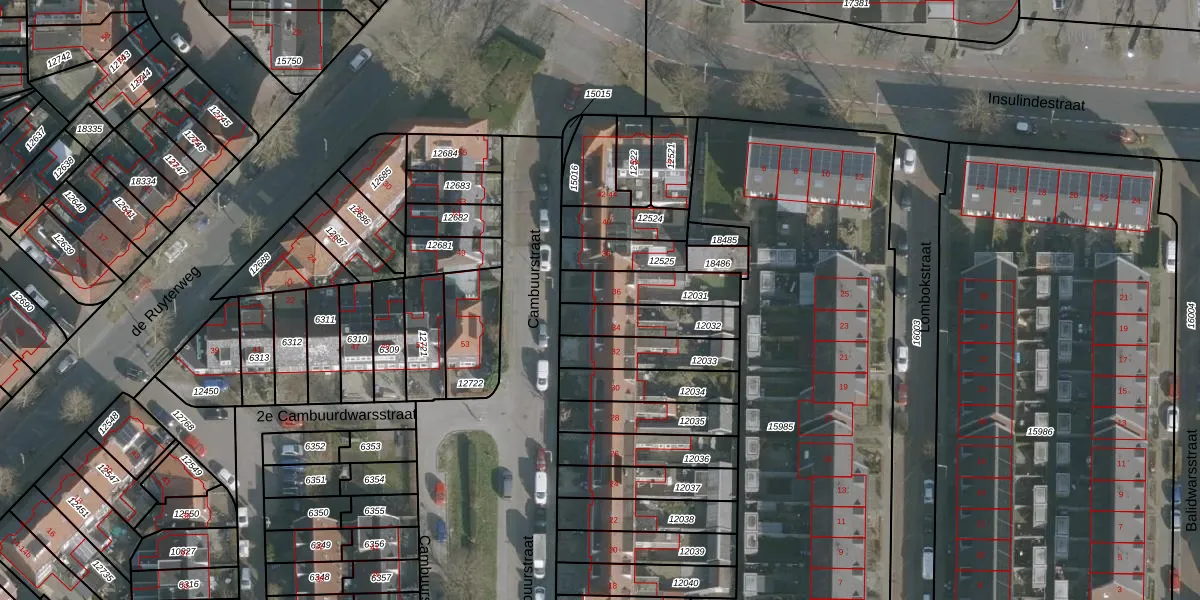 Het perceel waarop Cambuurstraat 36 staat heeft een oppervlakte van 165 m². Dit is een middelgroot perceel. De perceeloppervlakte wordt geregistreerd door het Kadaster. Gedetailleerde informatie over de maten van dit perceel kunt u vinden in het rapport Kadastrale kaart met maatvoering van Cambuurstraat 36.