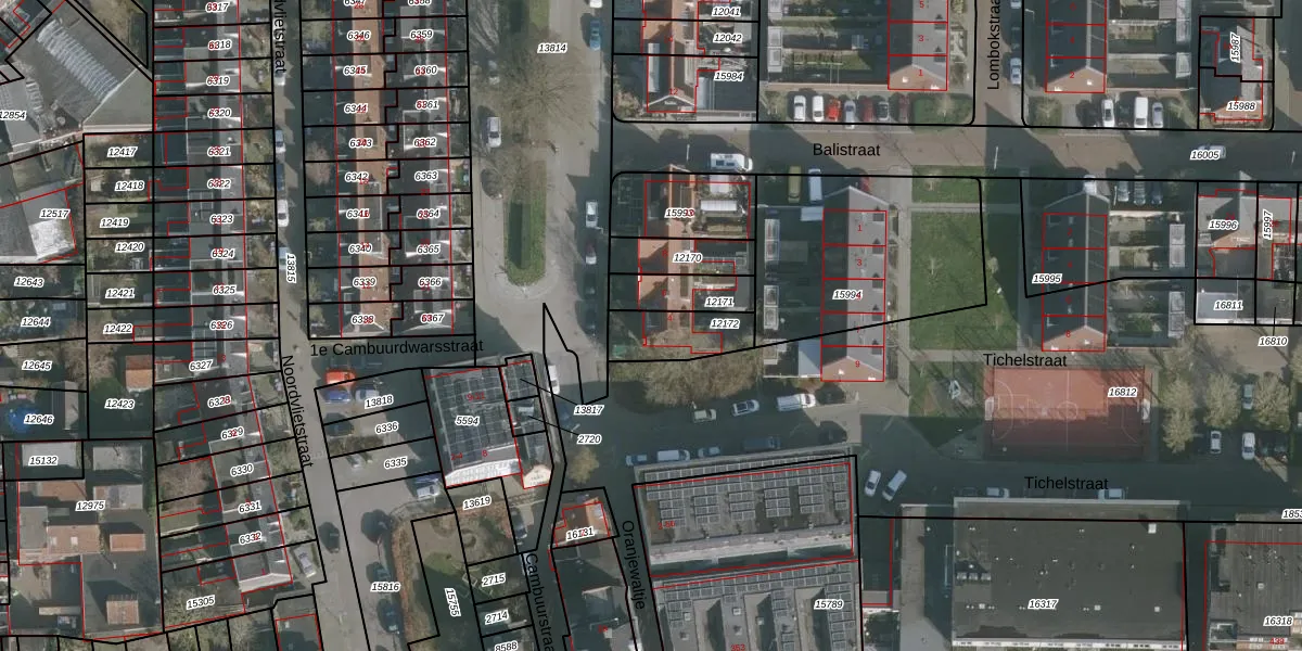 Gebruik de zoekbalk of klik op een perceel voor informatie over de adressen binnen dit perceel.