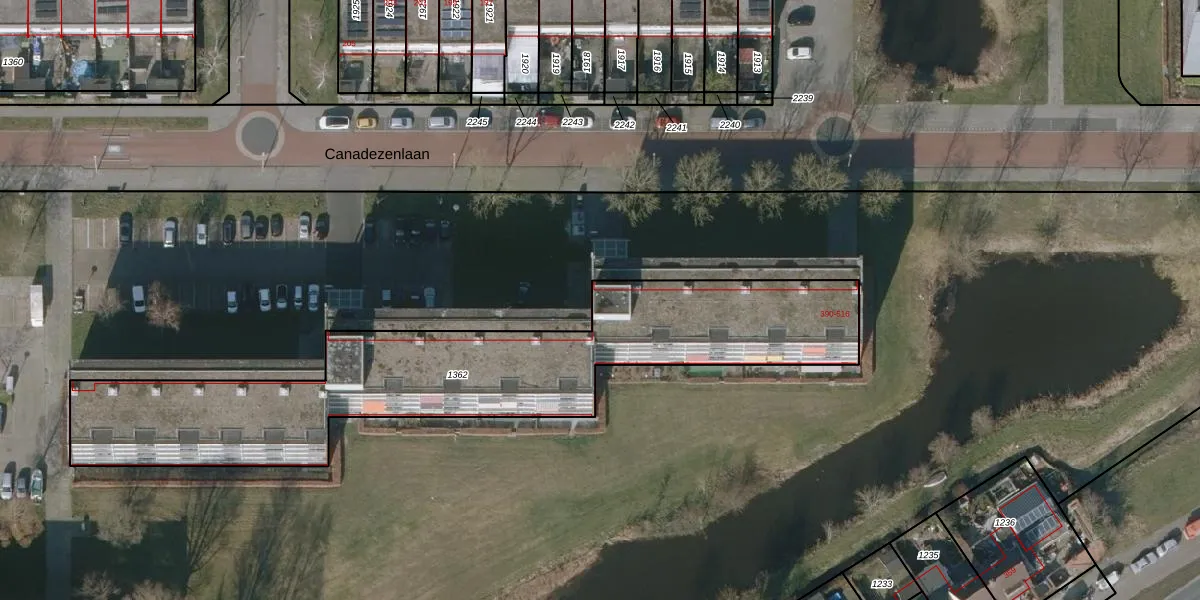 Canadezenlaan 398 is gelegen op kadastraal perceel LWD00H1362. Deze kadastrale aanduiding is uniek en wordt gebruikt door het Kadaster om eigendomsrechten en andere zakelijke rechten vast te leggen. Het perceel maakt onderdeel uit van de kadastrale gemeente Leeuwarden.
