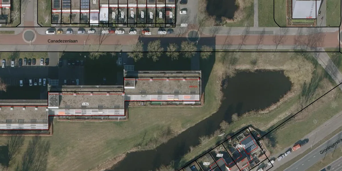 Canadezenlaan 480 is gelegen op kadastraal perceel LWD00H1362. Deze kadastrale aanduiding is uniek en wordt gebruikt door het Kadaster om eigendomsrechten en andere zakelijke rechten vast te leggen. Het perceel maakt onderdeel uit van de kadastrale gemeente Leeuwarden.