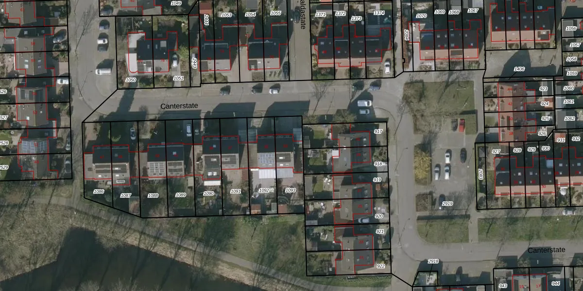 Het perceel waarop Canterstate 33 staat heeft een oppervlakte van 315 m². Dit is een groot perceel. De perceeloppervlakte wordt geregistreerd door het Kadaster. Gedetailleerde informatie over de maten van dit perceel kunt u vinden in het rapport Kadastrale kaart met maatvoering van Canterstate 33.