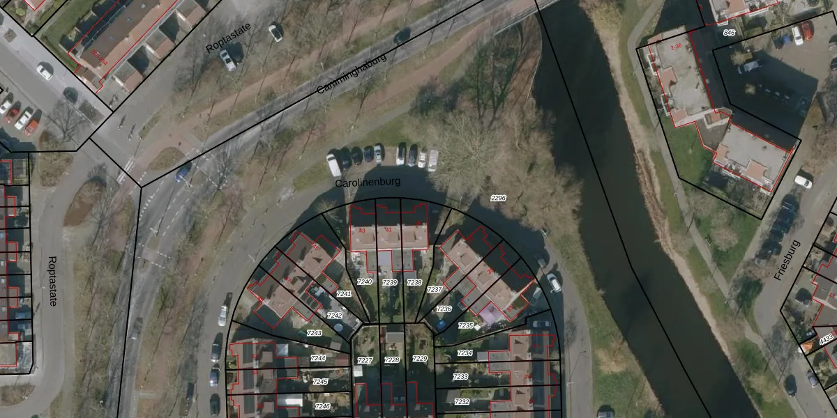 Het perceel waarop Carolinenburg 39 staat heeft een oppervlakte van 212 m². Dit is een middelgroot perceel. De perceeloppervlakte wordt geregistreerd door het Kadaster. Gedetailleerde informatie over de maten van dit perceel kunt u vinden in het rapport Kadastrale kaart met maatvoering van Carolinenburg 39.