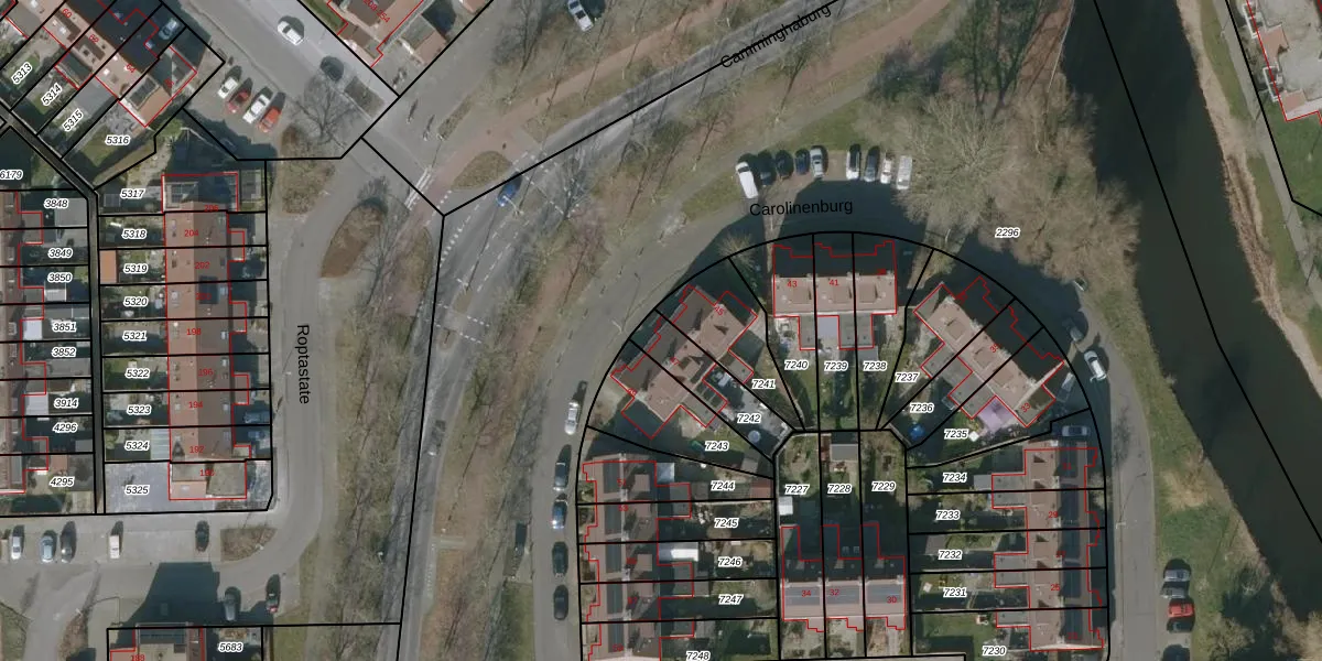 Carolinenburg 47 is gelegen op kadastraal perceel LWD00K7242. Deze kadastrale aanduiding is uniek en wordt gebruikt door het Kadaster om eigendomsrechten en andere zakelijke rechten vast te leggen. Het perceel maakt onderdeel uit van de kadastrale gemeente Leeuwarden.