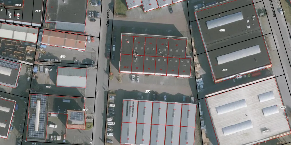 Het perceel waarop Castorweg 48 staat heeft een oppervlakte van 1,0 ha. Dit is een zeer groot perceel. De perceeloppervlakte wordt geregistreerd door het Kadaster. Gedetailleerde informatie over de maten van dit perceel kunt u vinden in het rapport Kadastrale kaart met maatvoering van Castorweg 48.