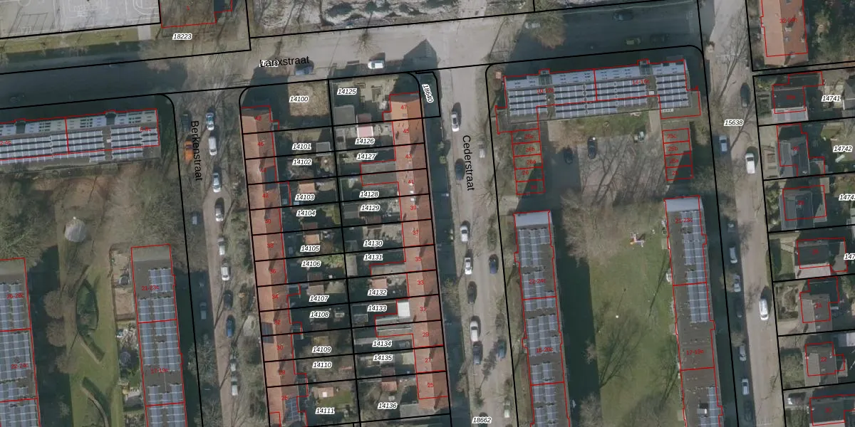 Het perceel waarop Cederstraat 39 staat heeft een oppervlakte van 128 m². Dit is een middelgroot perceel. De perceeloppervlakte wordt geregistreerd door het Kadaster. Gedetailleerde informatie over de maten van dit perceel kunt u vinden in het rapport Kadastrale kaart met maatvoering van Cederstraat 39.