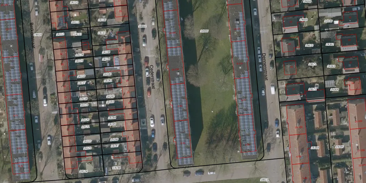 Het perceel waarop Cederstraat 8-c staat heeft een oppervlakte van 8310 m². Dit is een zeer groot perceel. De perceeloppervlakte wordt geregistreerd door het Kadaster. Gedetailleerde informatie over de maten van dit perceel kunt u vinden in het rapport Kadastrale kaart met maatvoering van Cederstraat 8-c.