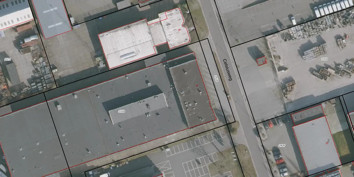 Het perceel waarop Celsiusweg 37 staat heeft een oppervlakte van 4707 m². Dit is een zeer groot perceel. De perceeloppervlakte wordt geregistreerd door het Kadaster. Gedetailleerde informatie over de maten van dit perceel kunt u vinden in het rapport Kadastrale kaart met maatvoering van Celsiusweg 37.