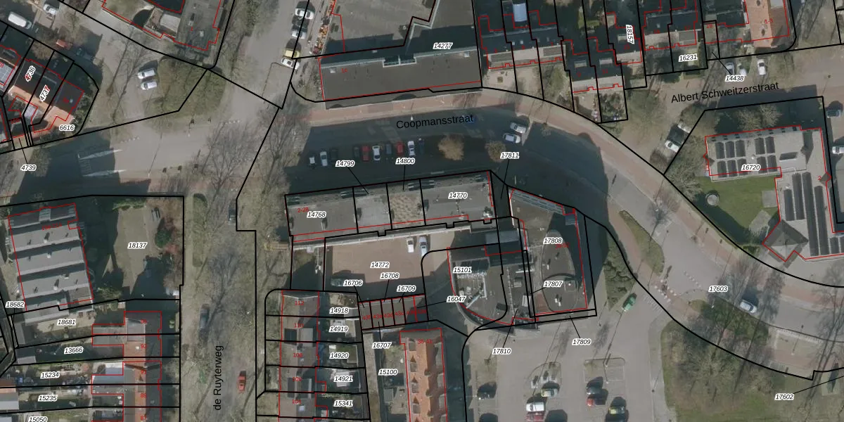 Coopmansstraat 16 is gelegen op kadastraal perceel LWD00G14800. Deze kadastrale aanduiding is uniek en wordt gebruikt door het Kadaster om eigendomsrechten en andere zakelijke rechten vast te leggen. Het perceel maakt onderdeel uit van de kadastrale gemeente Leeuwarden.