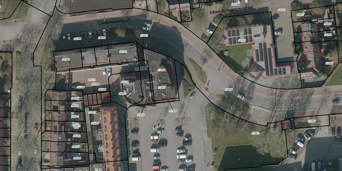 Het perceel waarop Coopmansstraat 34 staat heeft een oppervlakte van 418 m². Dit is een groot perceel. De perceeloppervlakte wordt geregistreerd door het Kadaster. Gedetailleerde informatie over de maten van dit perceel kunt u vinden in het rapport Kadastrale kaart met maatvoering van Coopmansstraat 34.