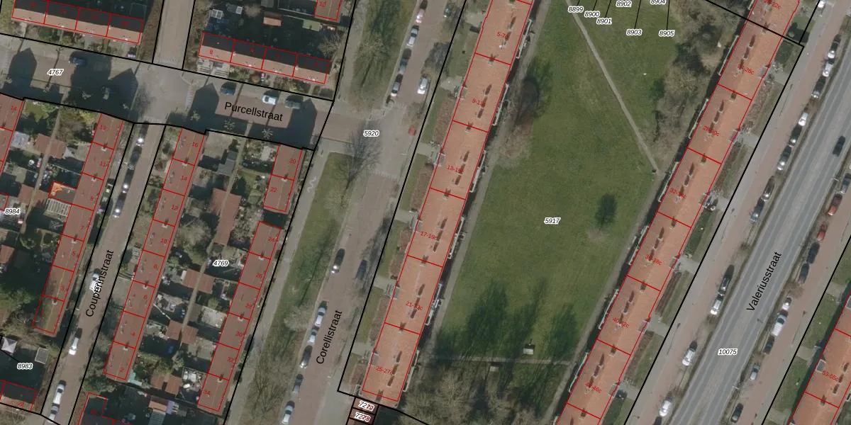 Het perceel waarop Corellistraat 17 staat heeft een oppervlakte van 8563 m². Dit is een zeer groot perceel. De perceeloppervlakte wordt geregistreerd door het Kadaster. Gedetailleerde informatie over de maten van dit perceel kunt u vinden in het rapport Kadastrale kaart met maatvoering van Corellistraat 17.