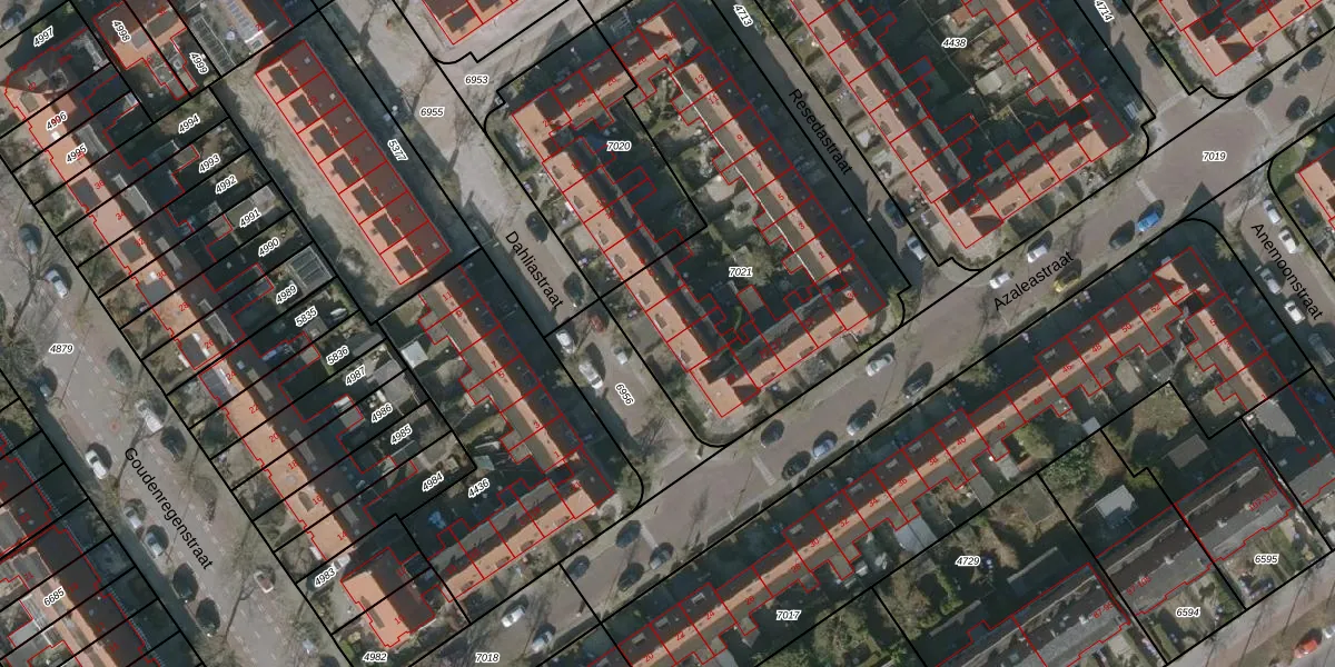 Het perceel waarop Dahliastraat 4 staat heeft een oppervlakte van 1785 m². Dit is een zeer groot perceel. De perceeloppervlakte wordt geregistreerd door het Kadaster. Gedetailleerde informatie over de maten van dit perceel kunt u vinden in het rapport Kadastrale kaart met maatvoering van Dahliastraat 4.