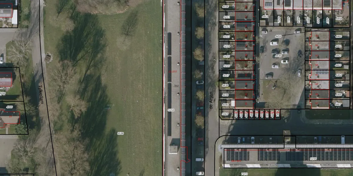 Het perceel waarop de Anjen 11-1 staat heeft een oppervlakte van 2090 m². Dit is een zeer groot perceel. De perceeloppervlakte wordt geregistreerd door het Kadaster. Gedetailleerde informatie over de maten van dit perceel kunt u vinden in het rapport Kadastrale kaart met maatvoering van de Anjen 11-1.