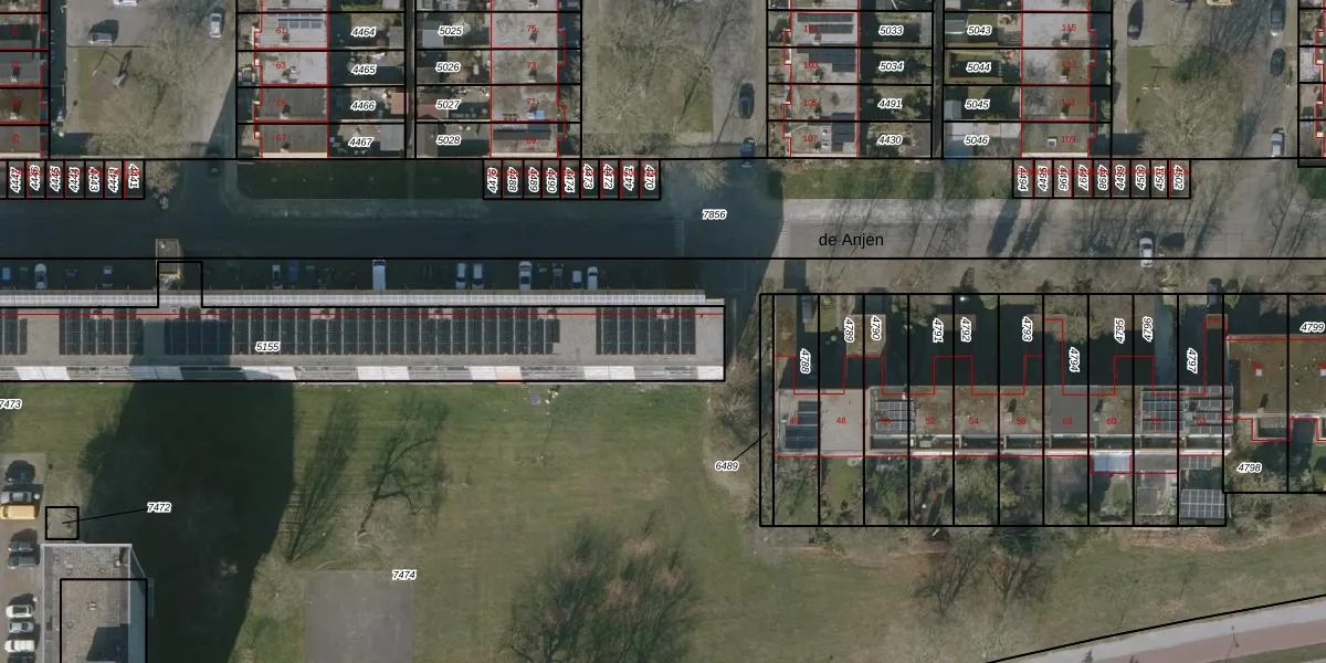 Het perceel waarop de Anjen 26-4 staat heeft een oppervlakte van 1439 m². Dit is een zeer groot perceel. De perceeloppervlakte wordt geregistreerd door het Kadaster. Gedetailleerde informatie over de maten van dit perceel kunt u vinden in het rapport Kadastrale kaart met maatvoering van de Anjen 26-4.