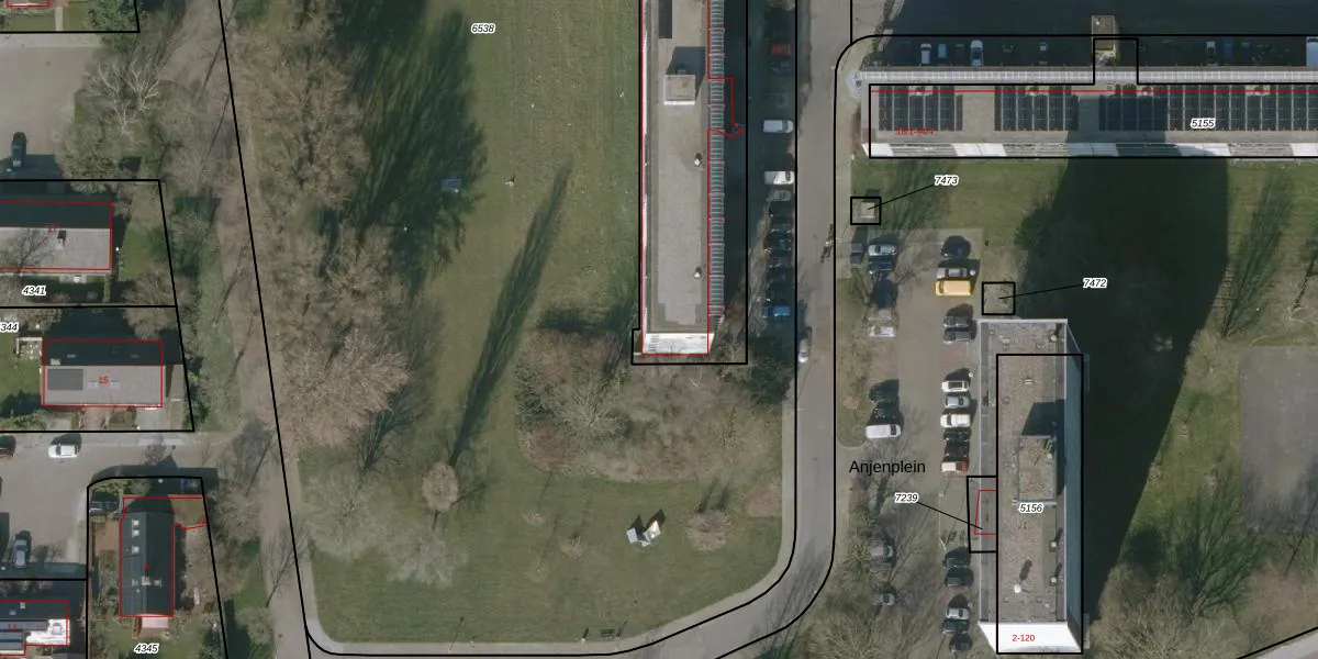 Het perceel waarop de Anjen 27-6 staat heeft een oppervlakte van 2090 m². Dit is een zeer groot perceel. De perceeloppervlakte wordt geregistreerd door het Kadaster. Gedetailleerde informatie over de maten van dit perceel kunt u vinden in het rapport Kadastrale kaart met maatvoering van de Anjen 27-6.