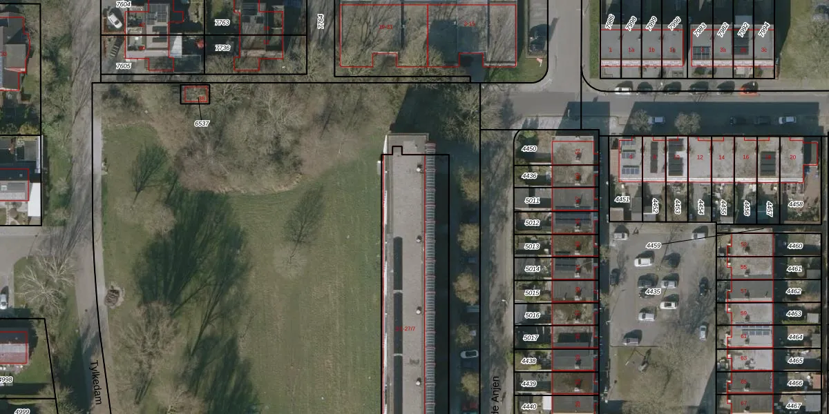 Het perceel waarop de Anjen 3-6 staat heeft een oppervlakte van 2090 m². Dit is een zeer groot perceel. De perceeloppervlakte wordt geregistreerd door het Kadaster. Gedetailleerde informatie over de maten van dit perceel kunt u vinden in het rapport Kadastrale kaart met maatvoering van de Anjen 3-6.