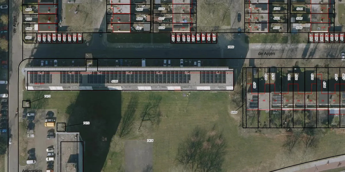 Het perceel waarop de Anjen 34-3 staat heeft een oppervlakte van 1439 m². Dit is een zeer groot perceel. De perceeloppervlakte wordt geregistreerd door het Kadaster. Gedetailleerde informatie over de maten van dit perceel kunt u vinden in het rapport Kadastrale kaart met maatvoering van de Anjen 34-3.