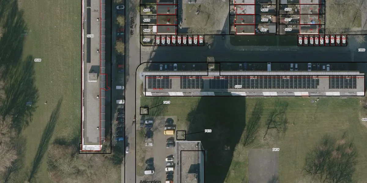 Het perceel waarop de Anjen 38 staat heeft een oppervlakte van 1439 m². Dit is een zeer groot perceel. De perceeloppervlakte wordt geregistreerd door het Kadaster. Gedetailleerde informatie over de maten van dit perceel kunt u vinden in het rapport Kadastrale kaart met maatvoering van de Anjen 38.