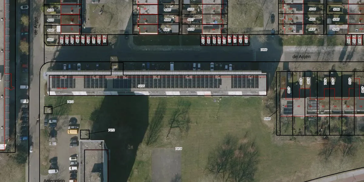 Het perceel waarop de Anjen 42 staat heeft een oppervlakte van 1439 m². Dit is een zeer groot perceel. De perceeloppervlakte wordt geregistreerd door het Kadaster. Gedetailleerde informatie over de maten van dit perceel kunt u vinden in het rapport Kadastrale kaart met maatvoering van de Anjen 42.