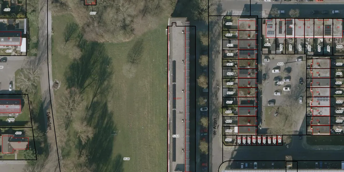 de Anjen 7-6 is gelegen op kadastraal perceel LWD00E5153. Deze kadastrale aanduiding is uniek en wordt gebruikt door het Kadaster om eigendomsrechten en andere zakelijke rechten vast te leggen. Het perceel maakt onderdeel uit van de kadastrale gemeente Leeuwarden.