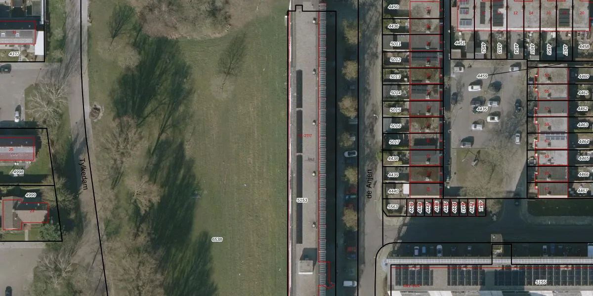 de Anjen 9-1 is gelegen op kadastraal perceel LWD00E5153. Deze kadastrale aanduiding is uniek en wordt gebruikt door het Kadaster om eigendomsrechten en andere zakelijke rechten vast te leggen. Het perceel maakt onderdeel uit van de kadastrale gemeente Leeuwarden.