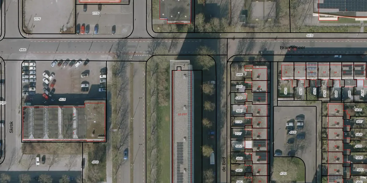 Het perceel waarop de Bird 1-4 staat heeft een oppervlakte van 2057 m². Dit is een zeer groot perceel. De perceeloppervlakte wordt geregistreerd door het Kadaster. Gedetailleerde informatie over de maten van dit perceel kunt u vinden in het rapport Kadastrale kaart met maatvoering van de Bird 1-4.