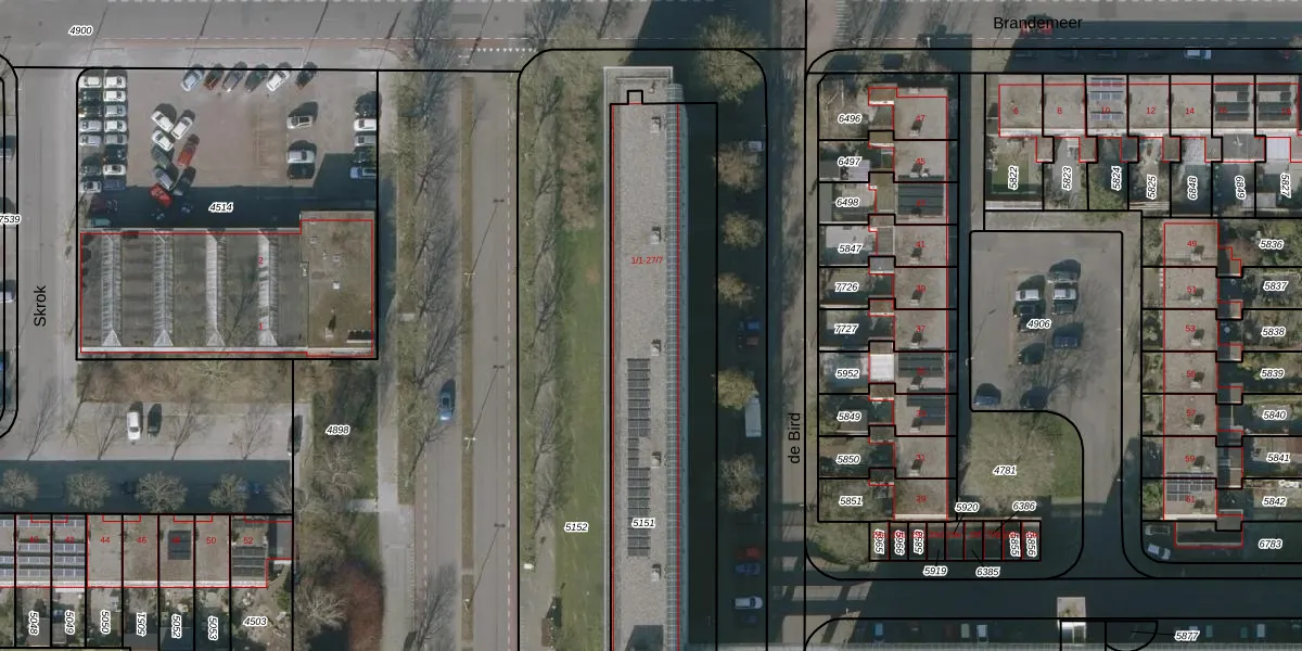 Het perceel waarop de Bird 3-1 staat heeft een oppervlakte van 2057 m². Dit is een zeer groot perceel. De perceeloppervlakte wordt geregistreerd door het Kadaster. Gedetailleerde informatie over de maten van dit perceel kunt u vinden in het rapport Kadastrale kaart met maatvoering van de Bird 3-1.
