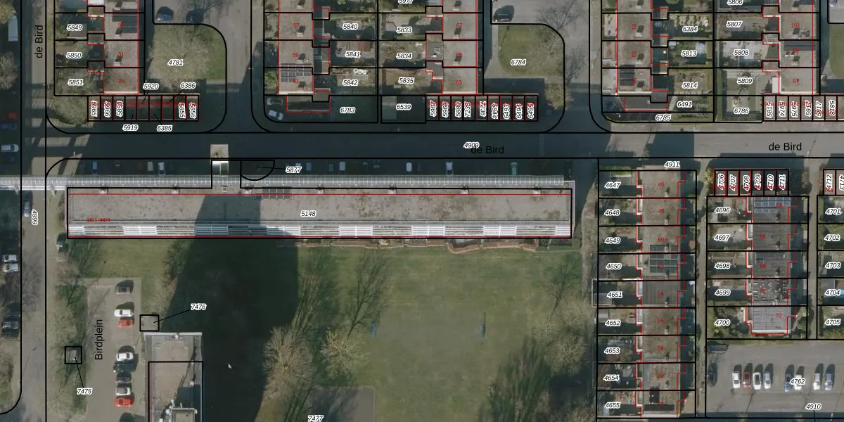 de Bird 34-3 is gelegen op kadastraal perceel LWD00E5148. Deze kadastrale aanduiding is uniek en wordt gebruikt door het Kadaster om eigendomsrechten en andere zakelijke rechten vast te leggen. Het perceel maakt onderdeel uit van de kadastrale gemeente Leeuwarden.