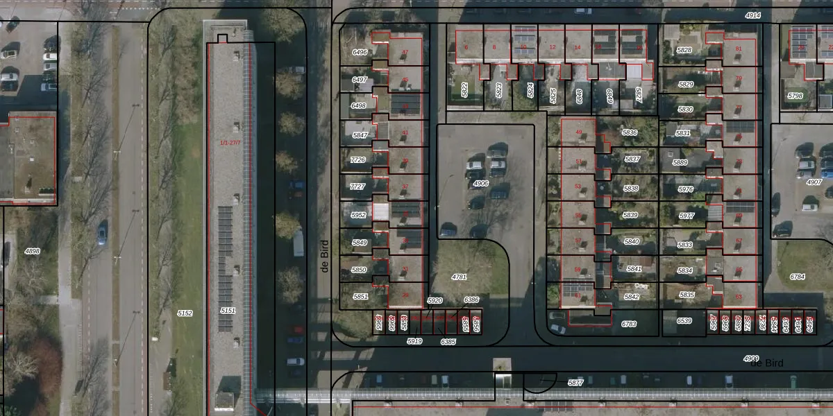 Het perceel waarop de Bird 35 staat heeft een oppervlakte van 139 m². Dit is een middelgroot perceel. De perceeloppervlakte wordt geregistreerd door het Kadaster. Gedetailleerde informatie over de maten van dit perceel kunt u vinden in het rapport Kadastrale kaart met maatvoering van de Bird 35.