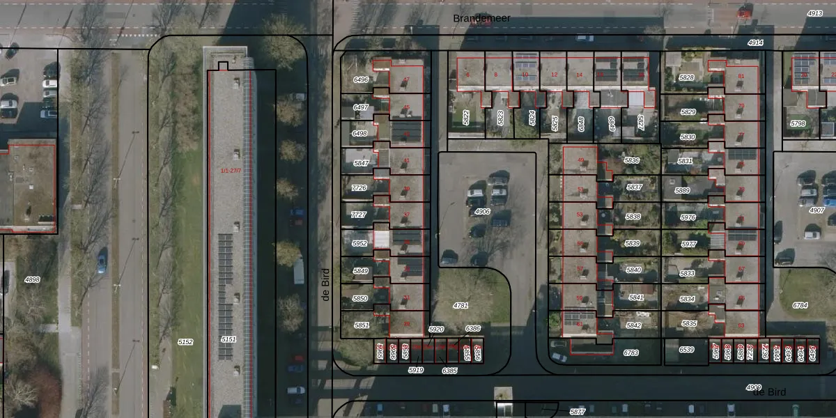 Het perceel waarop de Bird 37 staat heeft een oppervlakte van 139 m². Dit is een middelgroot perceel. De perceeloppervlakte wordt geregistreerd door het Kadaster. Gedetailleerde informatie over de maten van dit perceel kunt u vinden in het rapport Kadastrale kaart met maatvoering van de Bird 37.
