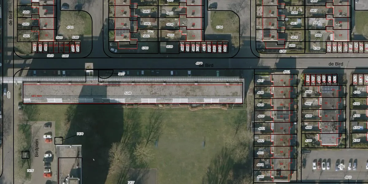 de Bird 38-4 is gelegen op kadastraal perceel LWD00E5148. Deze kadastrale aanduiding is uniek en wordt gebruikt door het Kadaster om eigendomsrechten en andere zakelijke rechten vast te leggen. Het perceel maakt onderdeel uit van de kadastrale gemeente Leeuwarden.