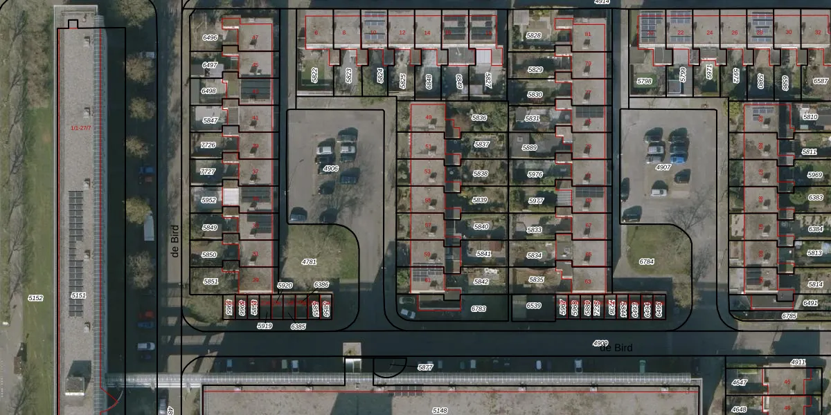 Het perceel waarop de Bird 55 staat heeft een oppervlakte van 176 m². Dit is een middelgroot perceel. De perceeloppervlakte wordt geregistreerd door het Kadaster. Gedetailleerde informatie over de maten van dit perceel kunt u vinden in het rapport Kadastrale kaart met maatvoering van de Bird 55.