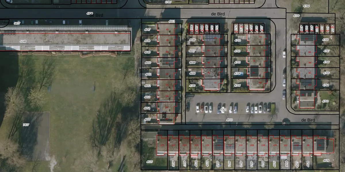 Het perceel waarop de Bird 56 staat heeft een oppervlakte van 154 m². Dit is een middelgroot perceel. De perceeloppervlakte wordt geregistreerd door het Kadaster. Gedetailleerde informatie over de maten van dit perceel kunt u vinden in het rapport Kadastrale kaart met maatvoering van de Bird 56.